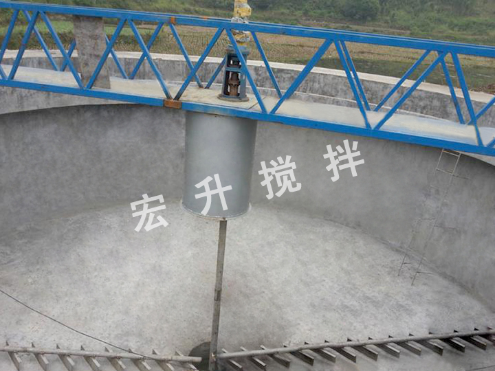 中心傳動(dòng)刮泥機(jī)原水經(jīng)中心配水筒布水后呈輻射流向池子周邊溢水槽,隨著流速的降低,水體中的懸浮物被分離而沉降于池底,上清液通過(guò)溢流堰板由出水槽排出池外。